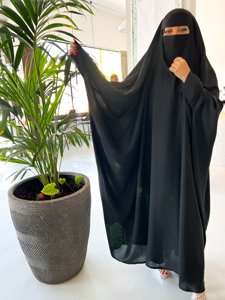- التصميم : تأتي العباءة باللون الأسود ،وتأتي بقصة واسعة وطويلة تغطي الجسم بشكل مثالي تضفي لمسة من الأناقة على إطلالتك، وبتصميم مغلق من الأمام يضمن سهولة الارتداء والحفاظ على الخصوصية