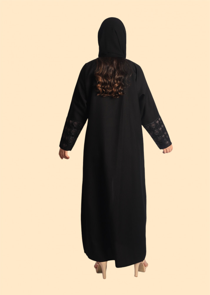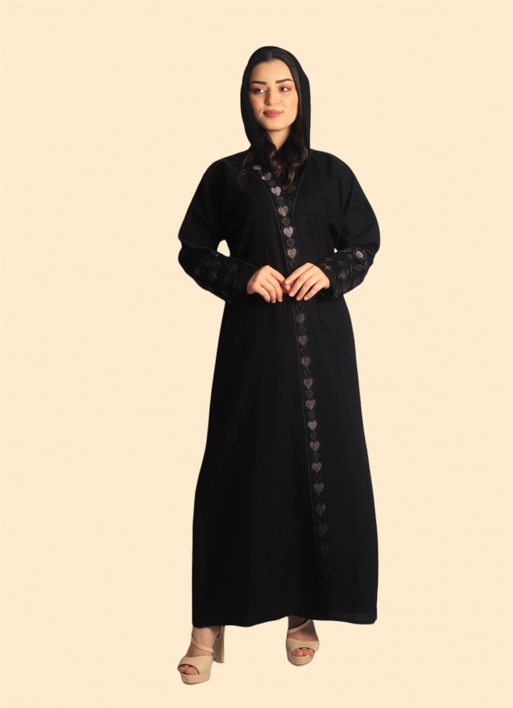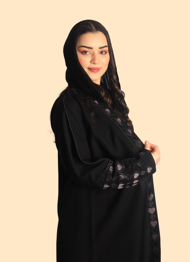 - التصميم :تأتي بلون أسود كلاسيكي ، وتصميم مميز بتطريز فضي وأزرق من الوسط والأكمام ، وقصة واسعة ومريحة تضفي لمسة من الأناقة والراحة على الإطلالة